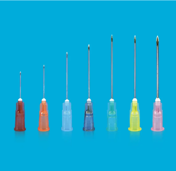 The inner diameter of No. 7 needle is 0.51mm, which represents purple. The inner diameter of No. 6.5 needle is 0.41mm, which represents blue. The inner diameter of No. 6 needle is 0.34mm, which represents orange. The inner diameter of No. 5 needle is 0.26mm, which represents red. The inner diameter of the needle is 0.21mm and the color is transparent. The needle is a hollow metal needle that can be freely attached and detached from the head end of the syringe. For the sake of safety and hygiene, disposable needles should be discarded after use and cannot be reused.